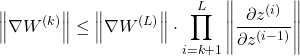 What matters here is the middle product of Jacobians because it carries the gradient signal backward through the layers.